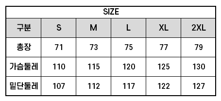 하단 사이즈표 참조