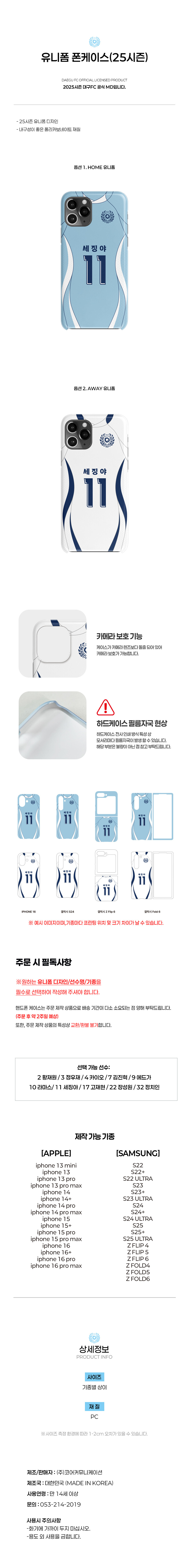 - 유니폼 마킹(K리그 패치 및 이름&번호, 기타 마킹작업 등)의 경우 교환 및 환불이 불가합니다.