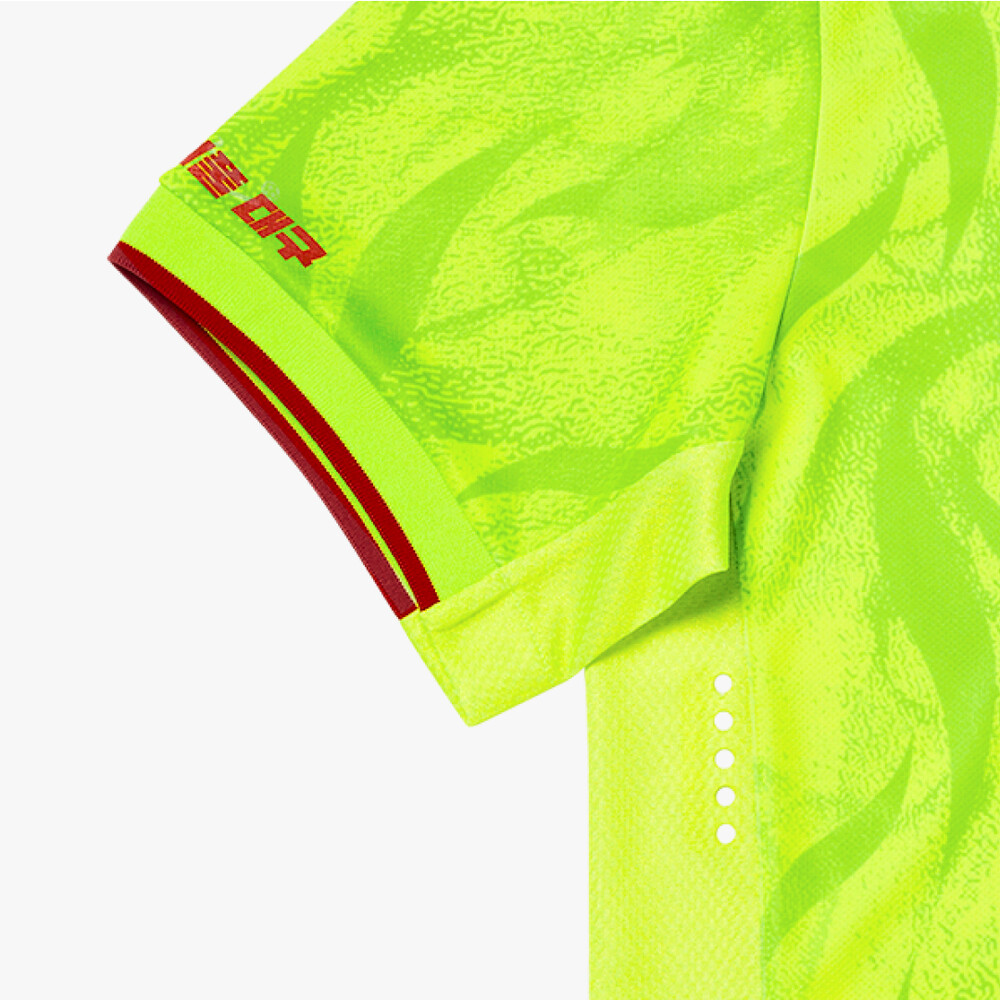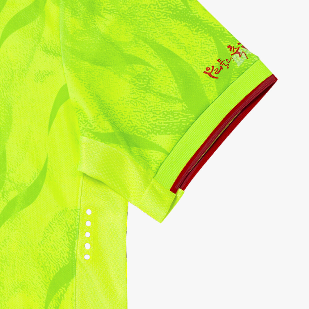 유니폼 전면에는 엠블럼 속 태양의 불꽃이 타오르는 모양을 올 오버 그래픽으로 표현해
