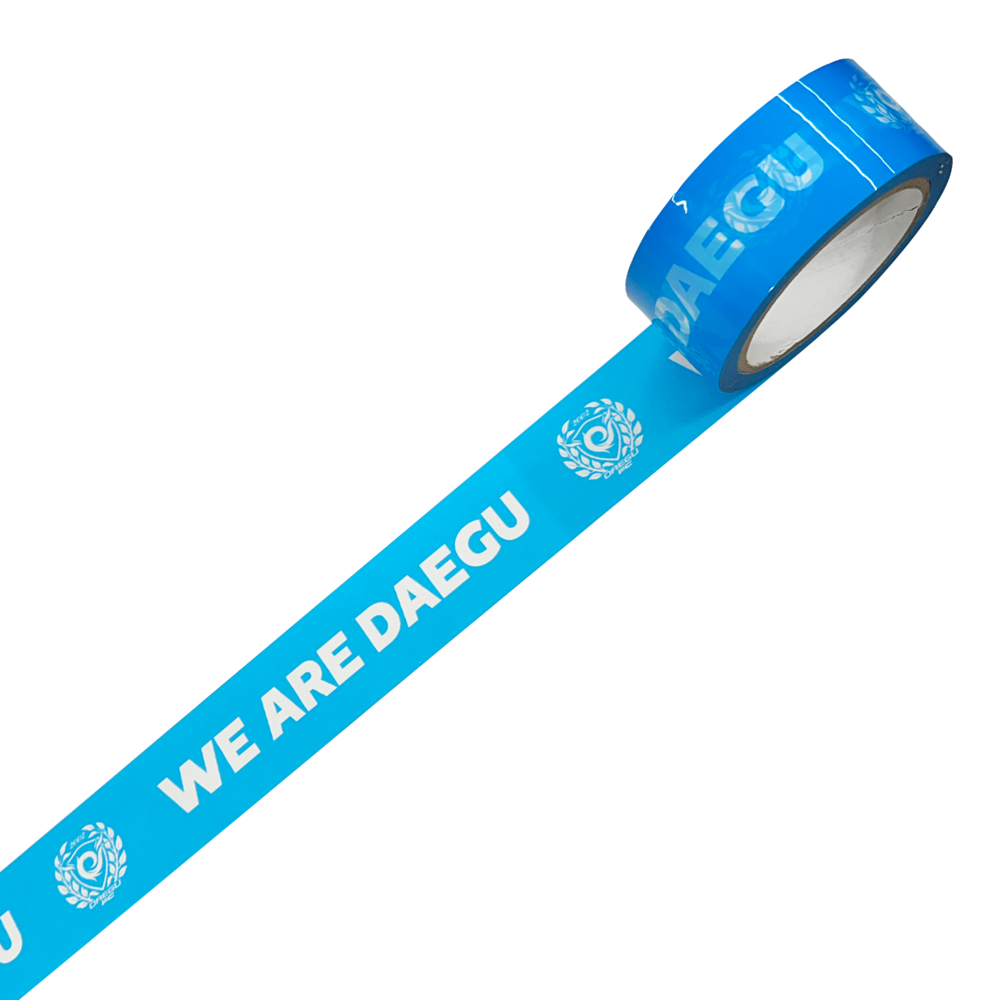 하늘색 색상의 테이프와 대구FC 엠블럼, WE ARE DAEGU