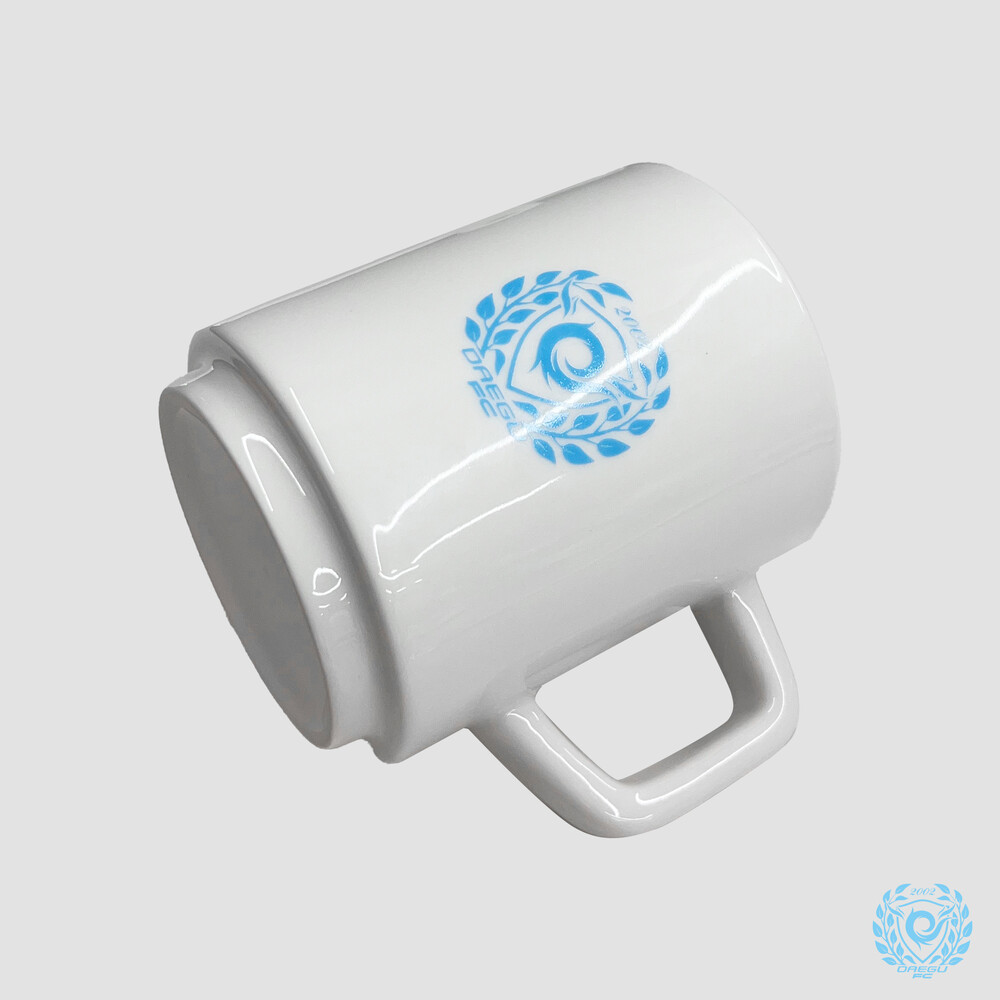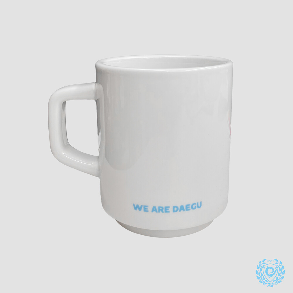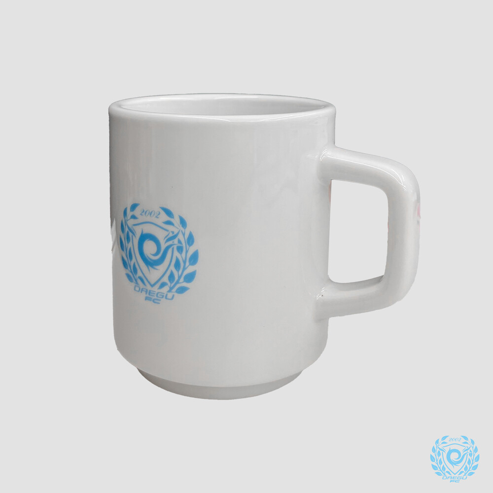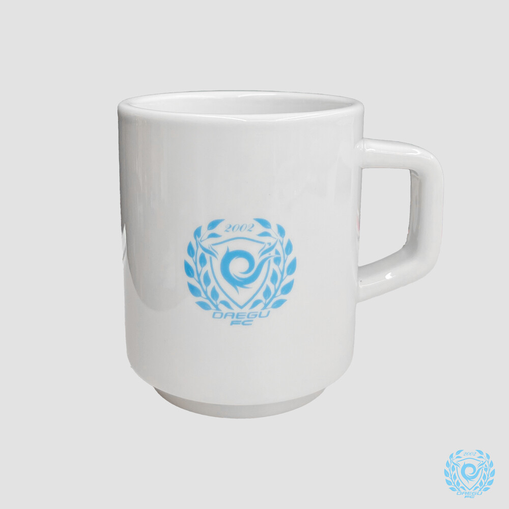 엠블럼과 슬로건을 활용한 디자인의 화이트 유광 머그컵입니다.