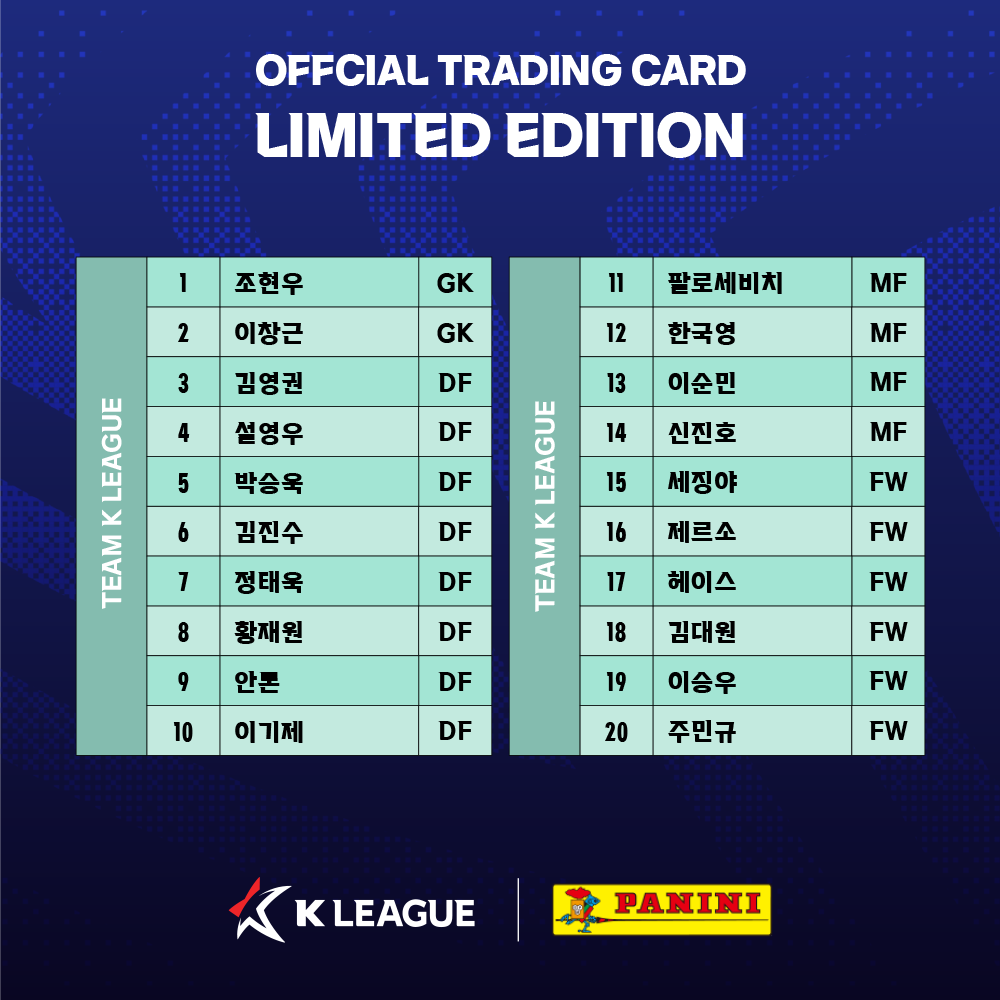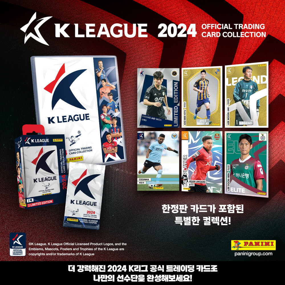 리미티드 에디션 카드가 포함된 2024 K리그 파니니 트레이딩 카드 스타터팩 / 틴 케이스 입니다.