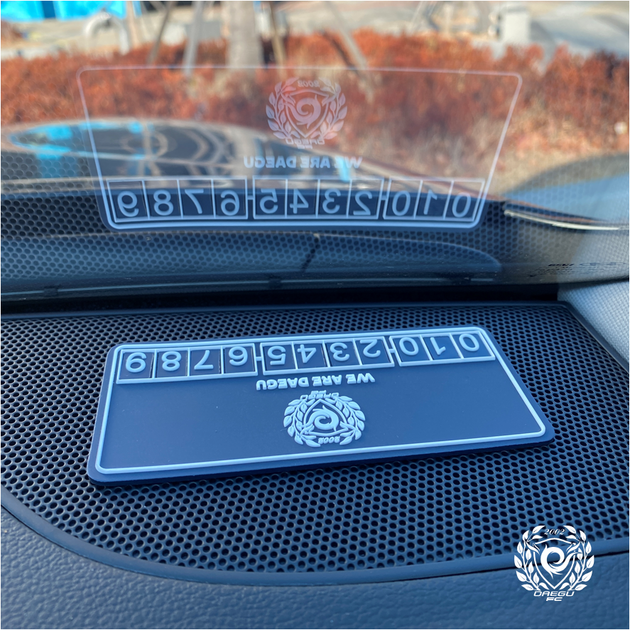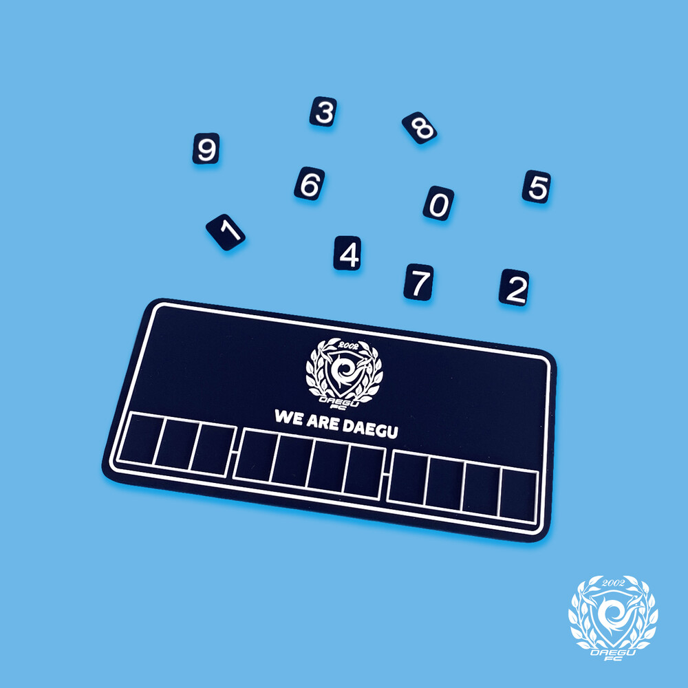 대구FC 상징 엠블럼이 들어간 주차번호판입니다.