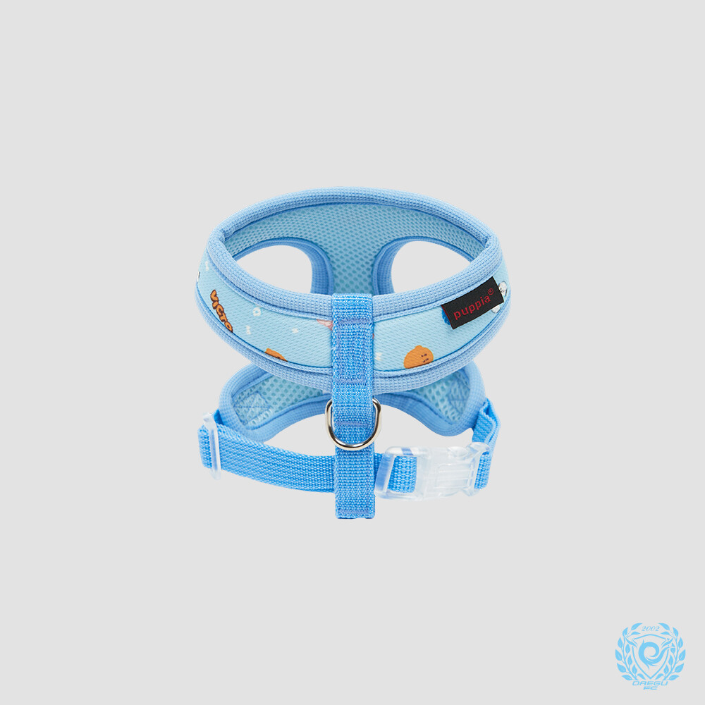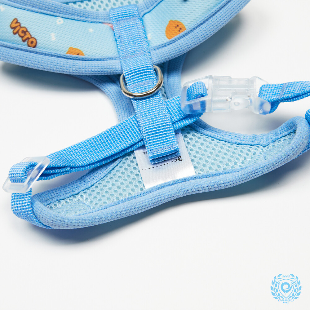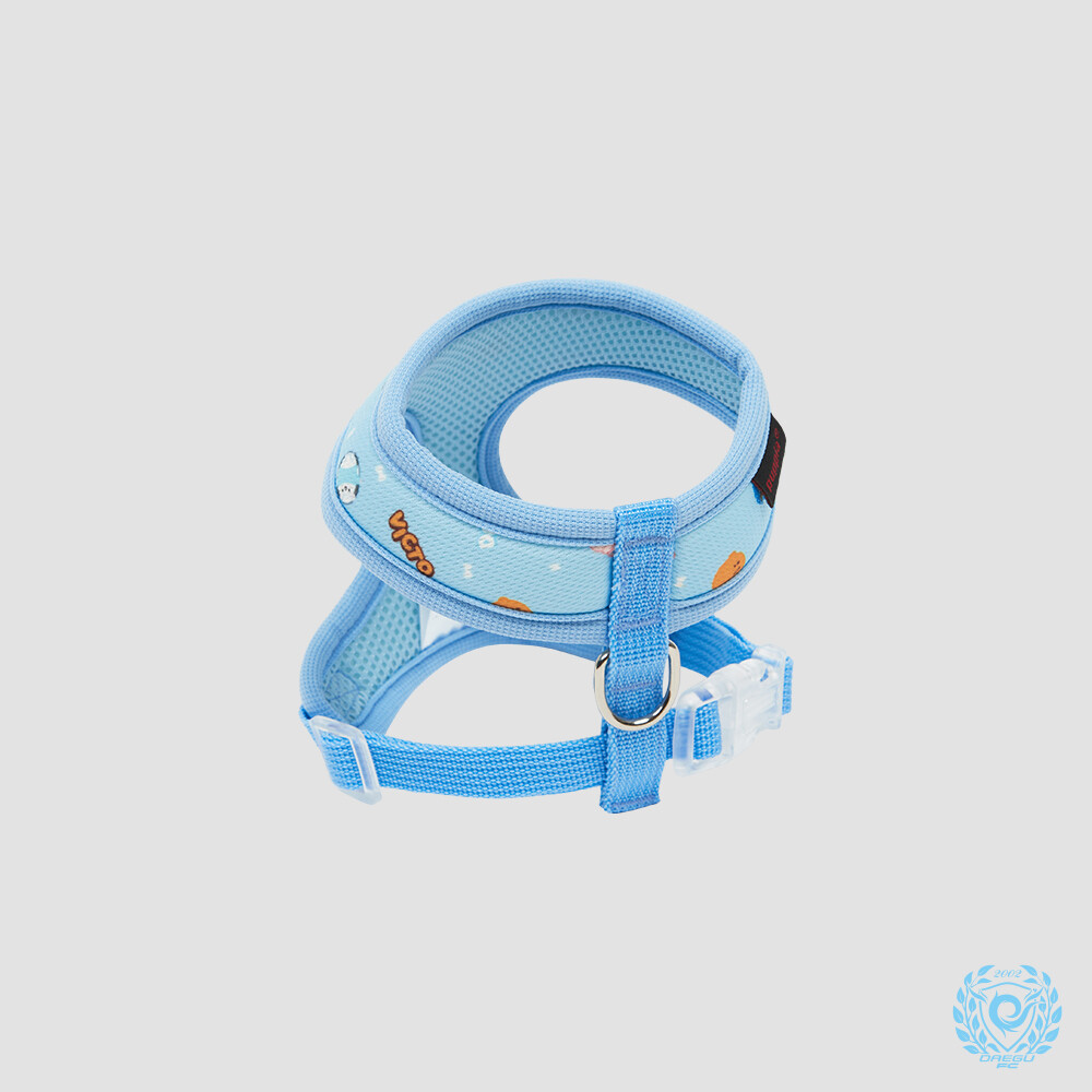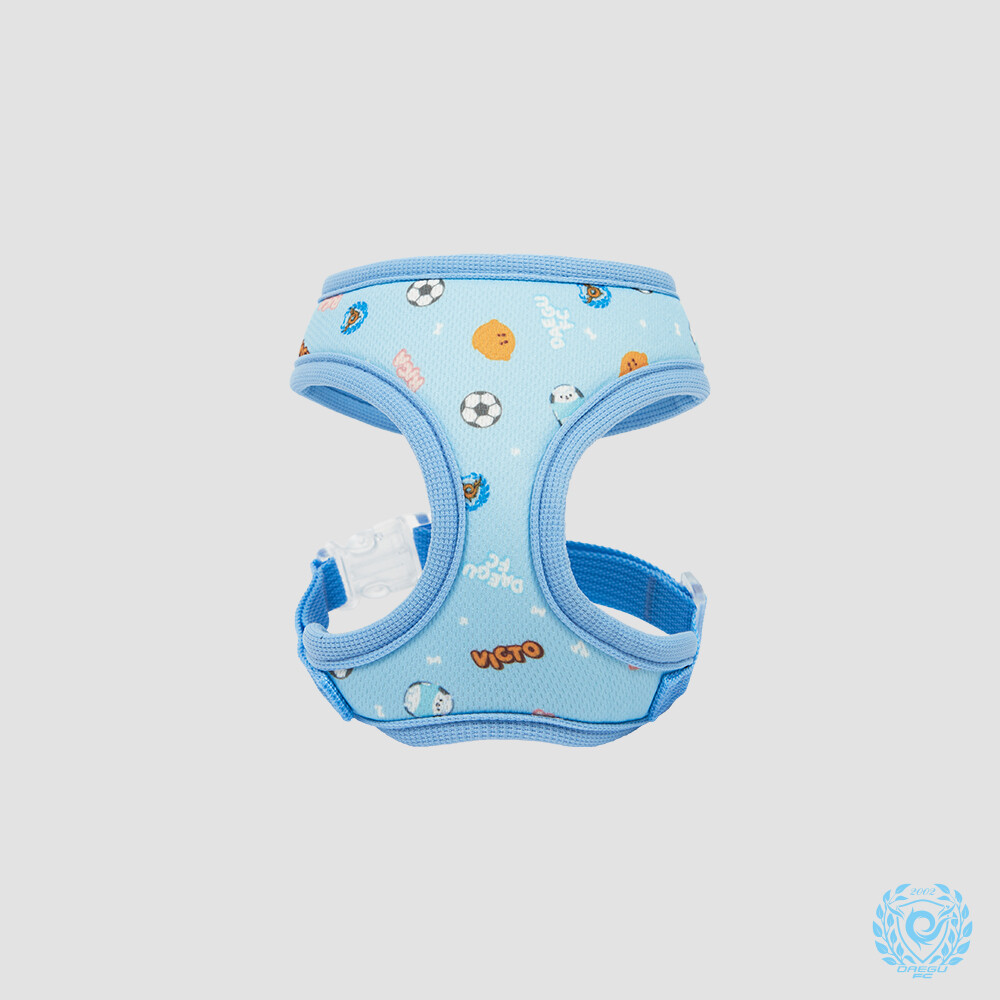 대구FC의 다양한 요소들이 패턴으로 들어간 펫 하네스입니다.