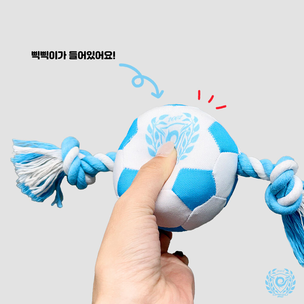 대구FC의 엠블럼이 들어간 축구공 모양의 펫 토이입니다.