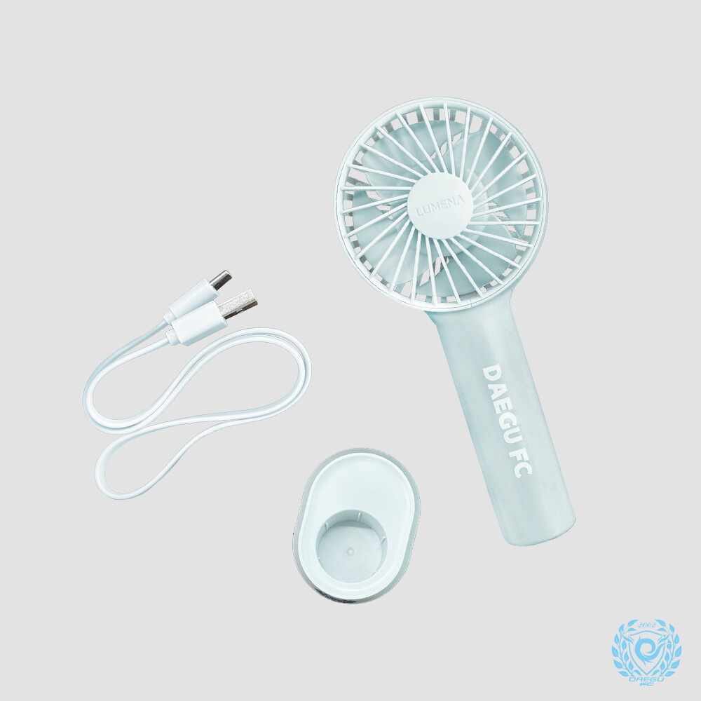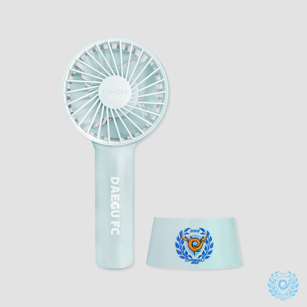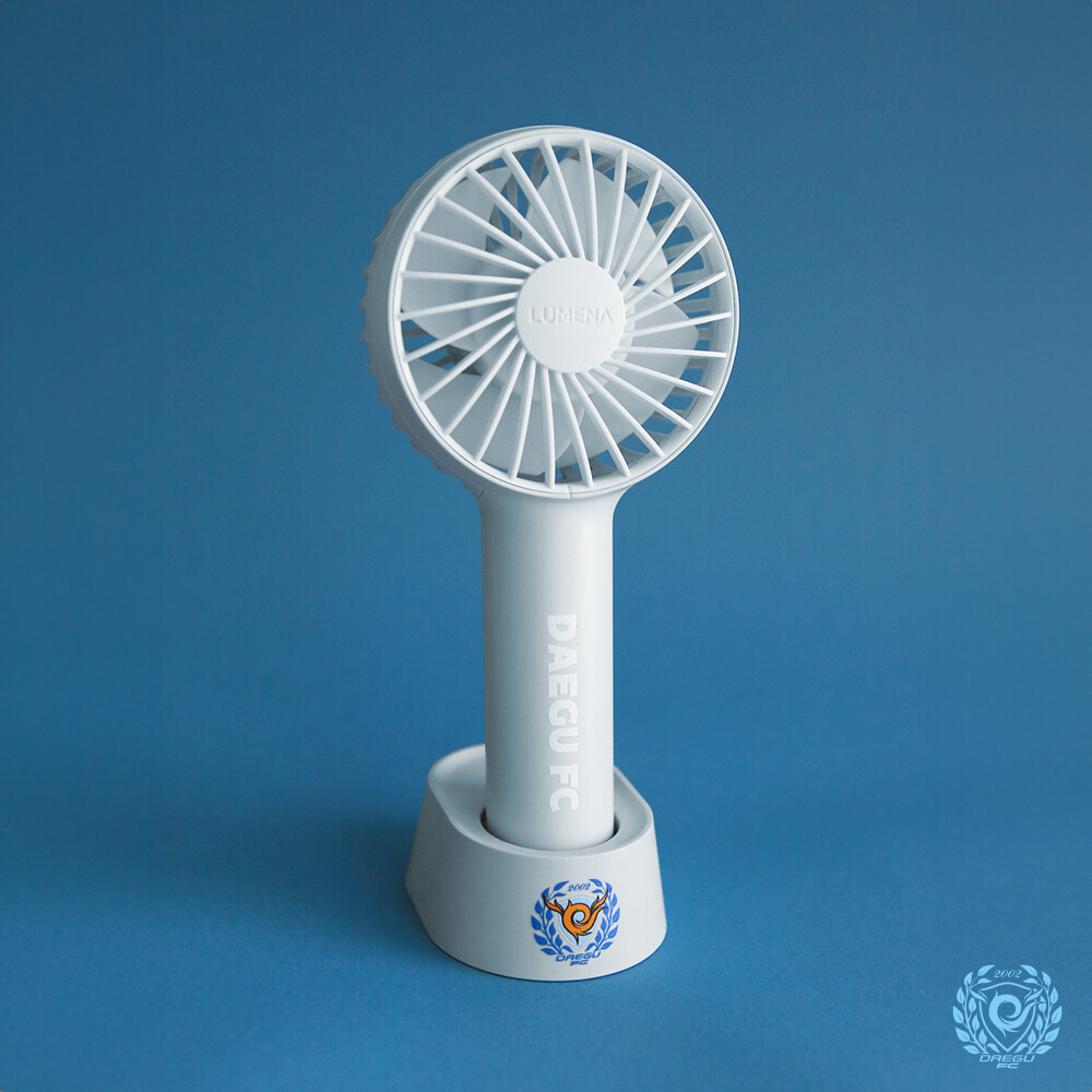 엠블럼이 들어간 거치대와 DAEGU FC가 포인트인 휴대용 선풍기입니다.