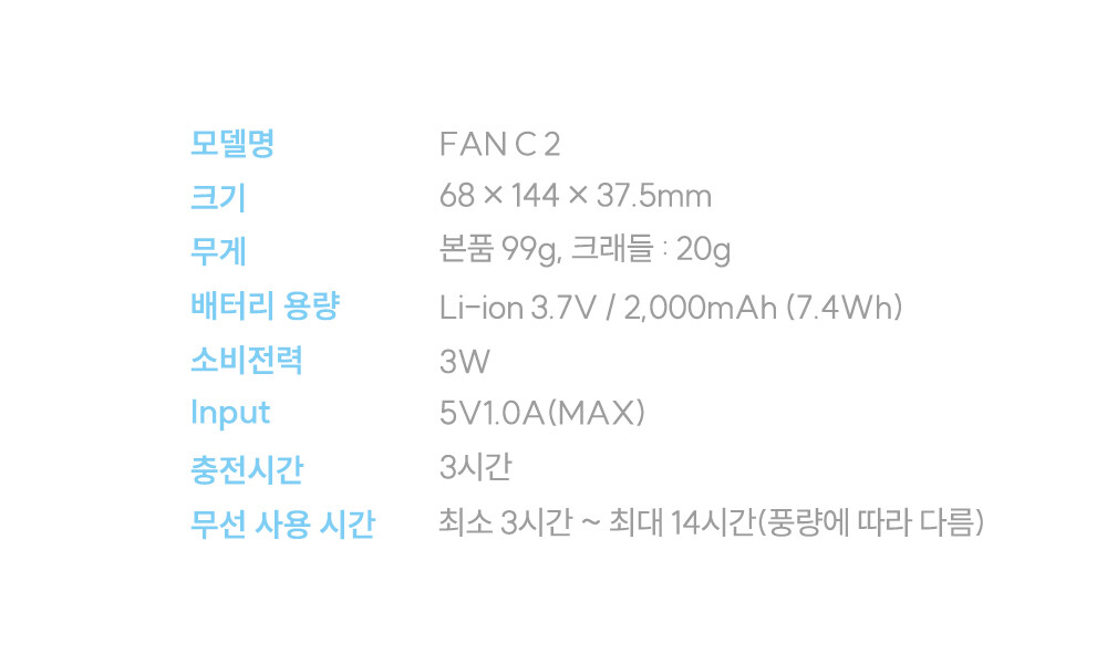FAN C2 본체 / 전용 크래들 / 전용 핸드 스트랩 / TYPE-C 케이블 / 사용 설명서